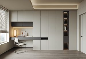 Grey comes in many shades — from dove‑grey to charcoal or slate — and each gives a different mood. Lighter tones help keep small rooms bright and airy; darker tones add depth and modern edge. Moreover, finishes like matte laminate or smooth veneer help the wardrobe look clean and modern, and make it easier to match with other furniture.