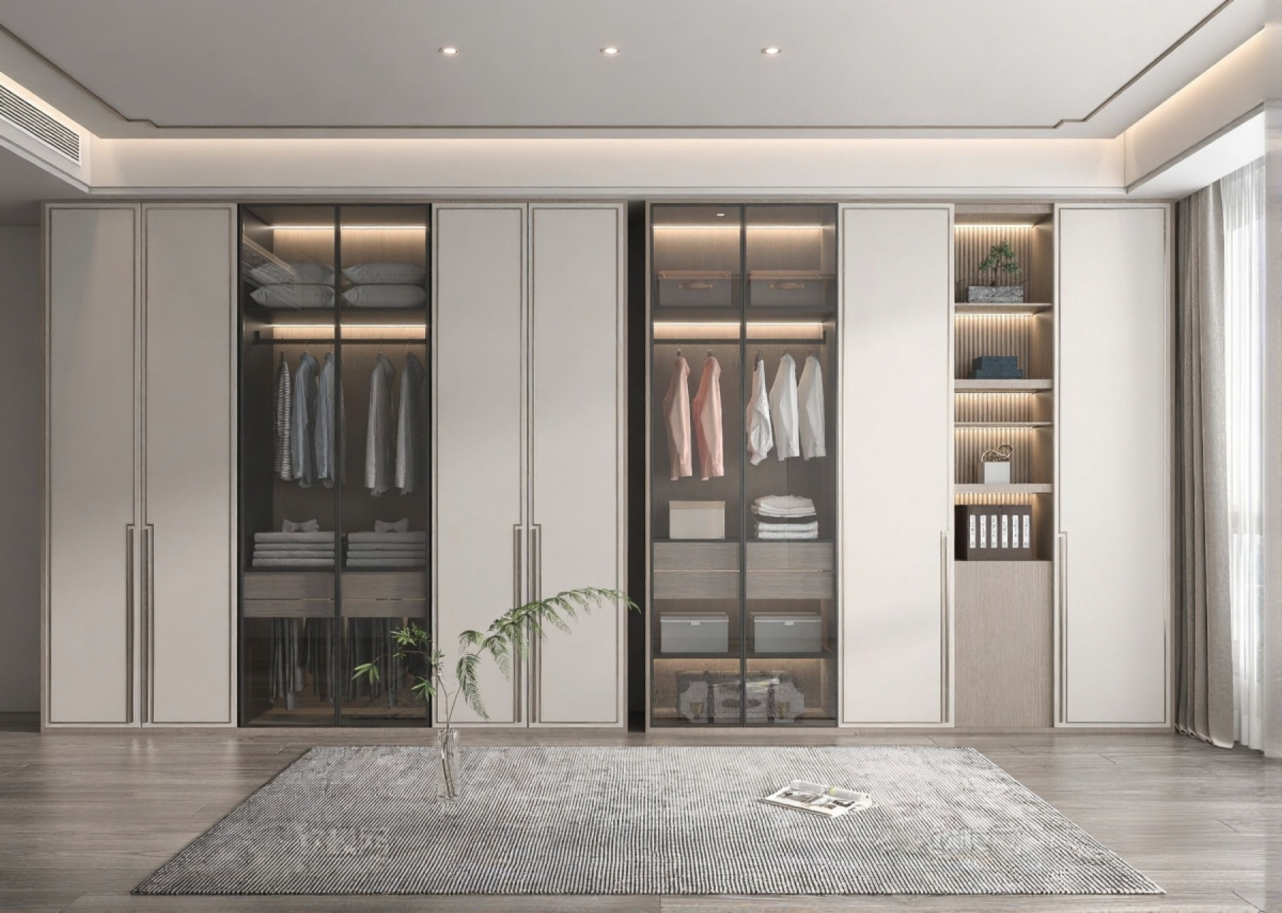 Moreover, these wardrobes combine storage with a full-length mirror. You can check your outfit while accessing your clothes. This clever design saves both space and time. As a result, you get a more organized morning routine in a streamlined bedroom layout.