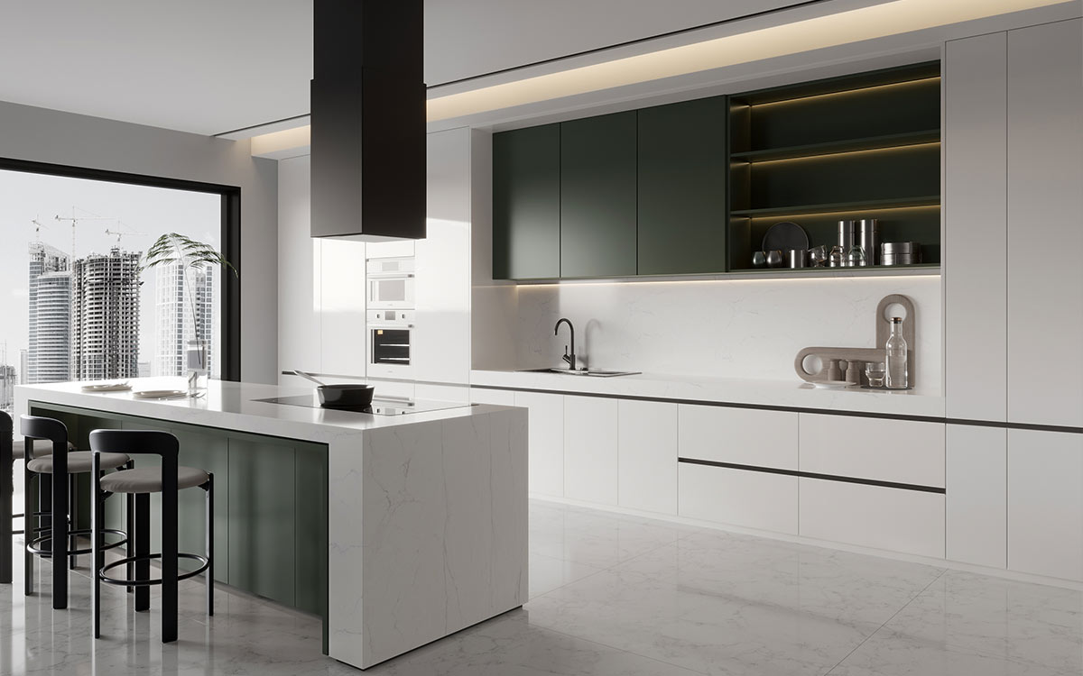 Use two tones to enhance room proportions. Paint upper cabinets in lighter shades. Meanwhile, choose darker colors below. Consequently, ceilings appear higher. Therefore, your kitchen feels more open and spacious.